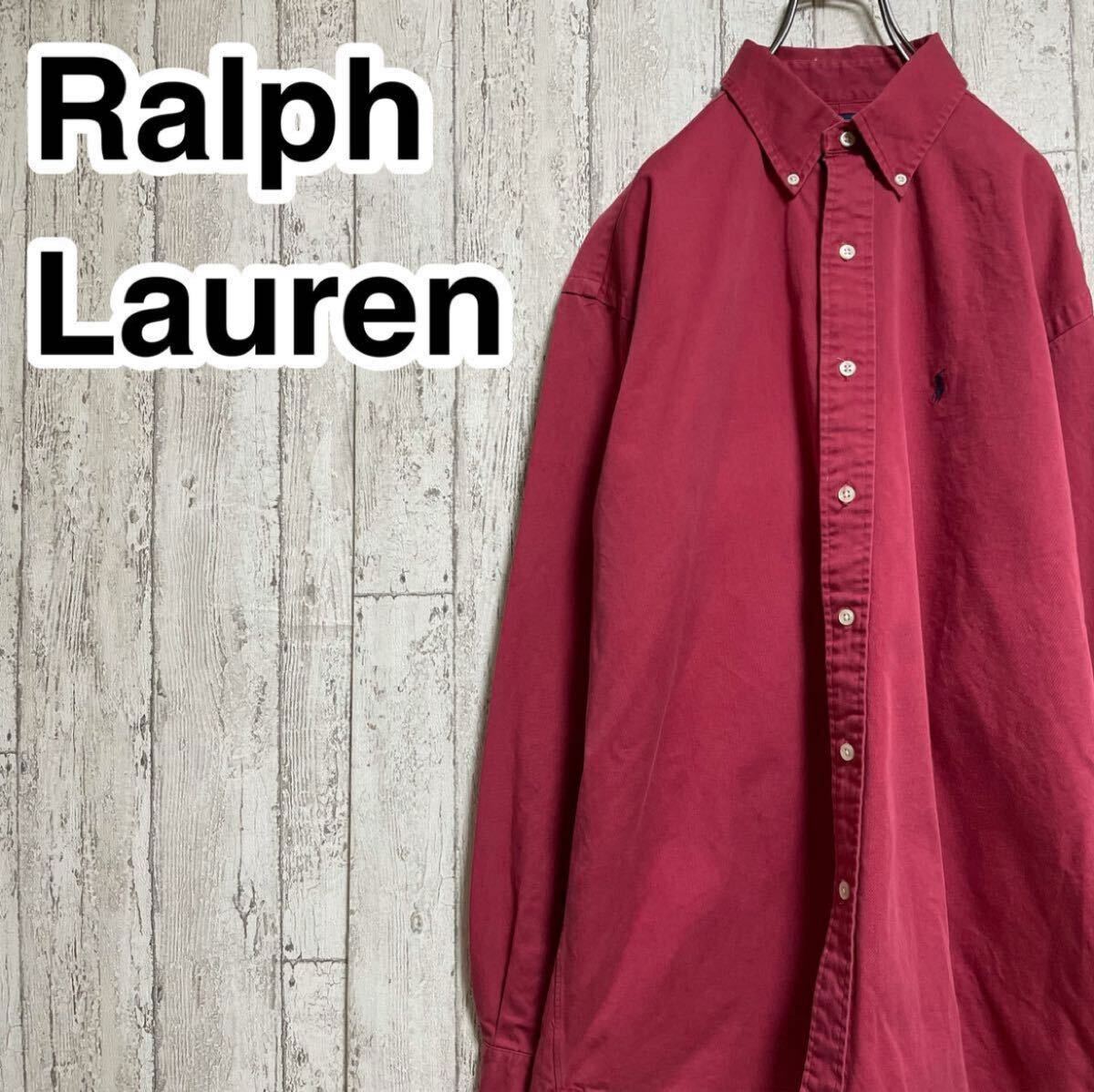 > ☆送料無料☆ Ralph Lauren ラルフローレン 長袖 ボタンダウン シャツ Mサイズ 深紅 刺繍ポニー 21-210