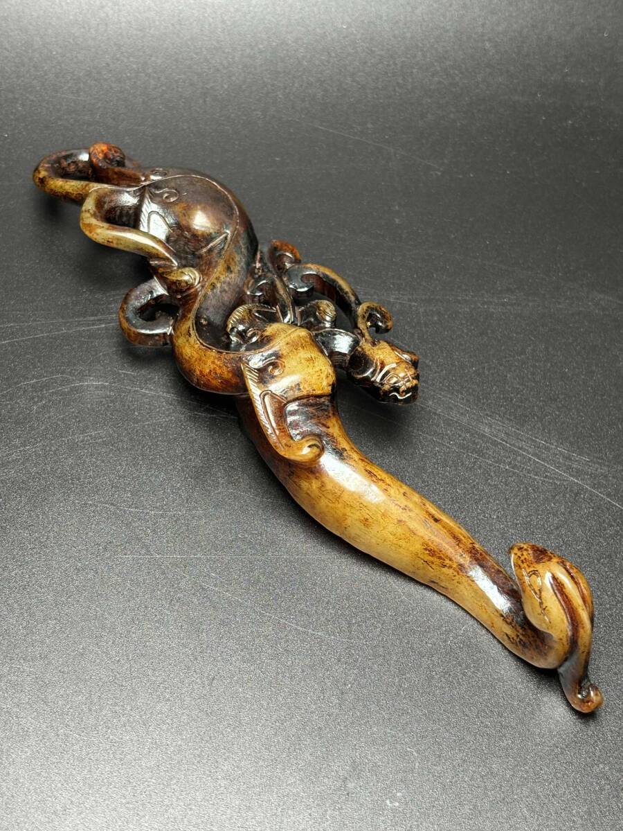 - 『戦漢・古高古玉彫・龍頭鳳尾空彫帶鈎』極細工・東洋彫刻・骨董品・古賞物・中国古玩・中国古美術