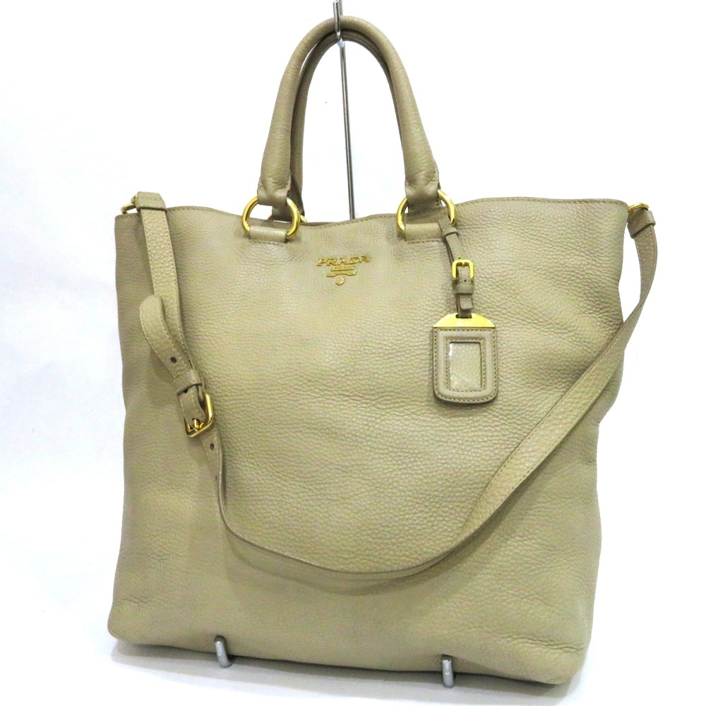 > 中古 プラダ レザー 2WAYトートバッグ Bランク ベージュ ラージ ゴールド金具 PRADA【送料無料】【名谷店】