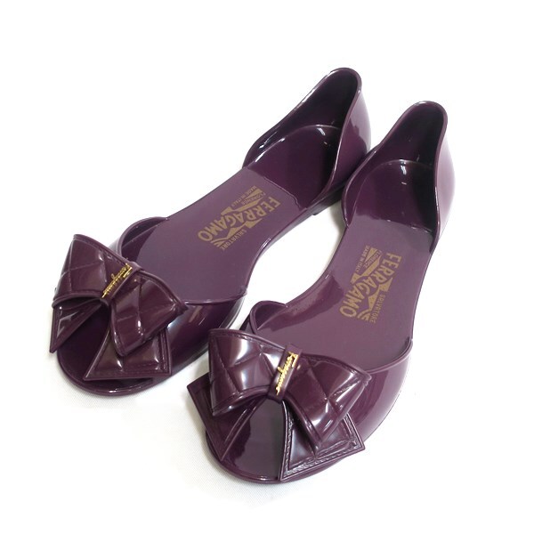 > FERRAGAMO フェラガモ ラバー リボン サンダル パープル #6 約23.5cm向き【送料無料】中古品 used AB