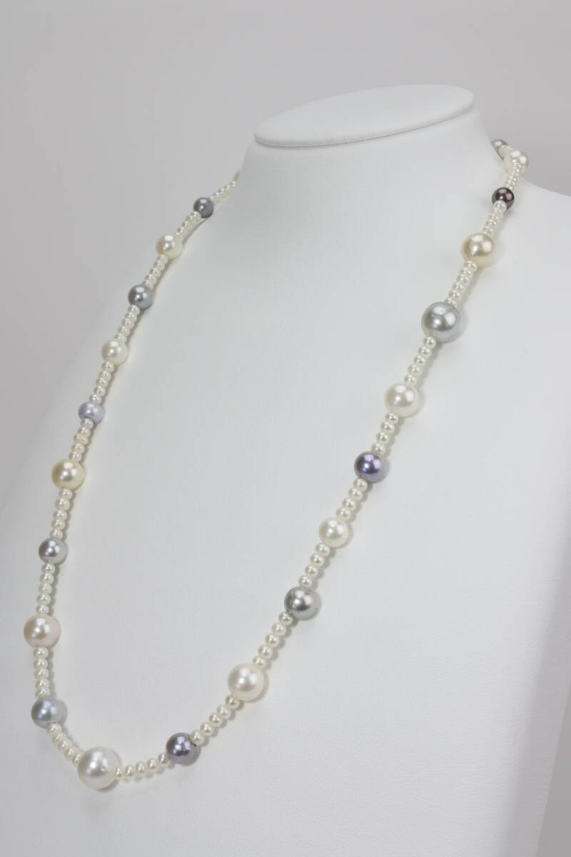 > *日本製 アコヤ本真珠 淡水真珠 ネックレス 最大玉径9mm 長さ:52cm 重さ:21g SILVER刻印 新品未使用