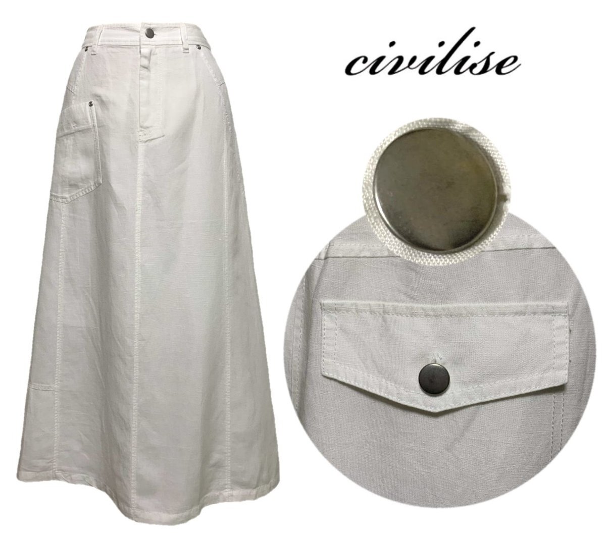 - civilise シビリゼ 清涼麻混 ダンガリー Aライン フレアスカート 白 size38 9号 M