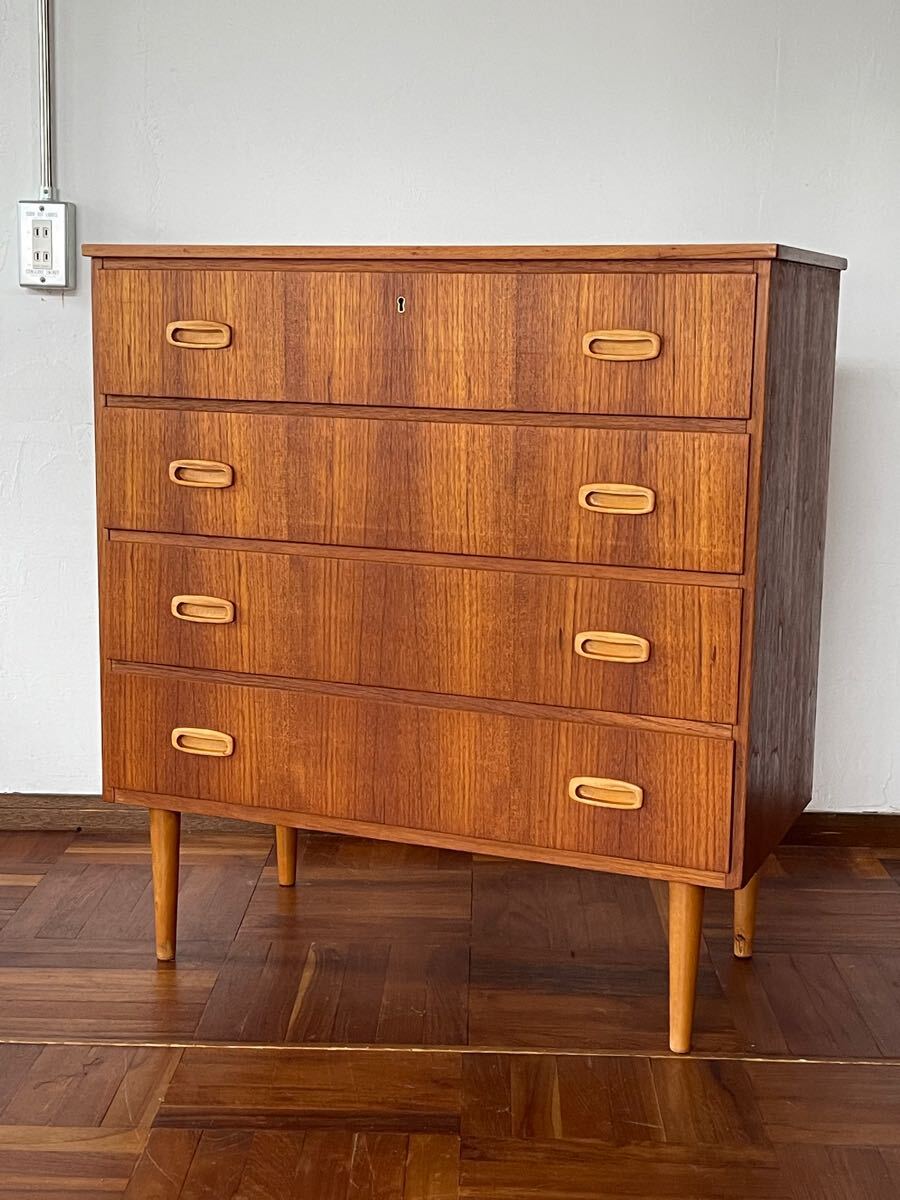 - 北欧 デンマーク ヴィンテージ チーク オイルフィニッシュ 4段 チェスト サイドボード ビンテージ ミッドセンチュリー