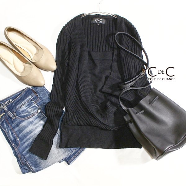 - 美品 COUP DE CHANCE クードシャンス 上品綺麗め リブストレッチ ウール ニット プルオーバー 38号 M 秋 冬 24B10