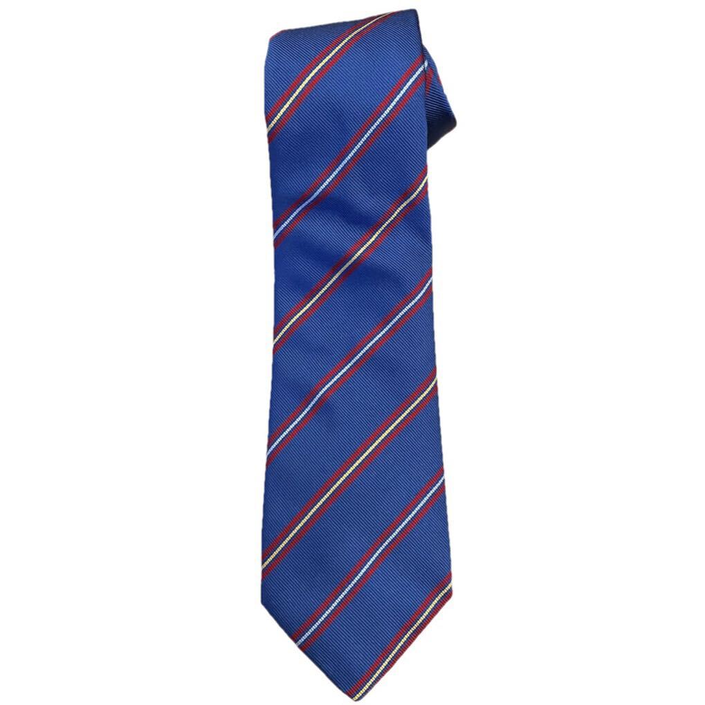 - MADE IN ITALY製 Petronius レジメンタルストライプ柄ハンドメイドシルクネクタイ ブルー ペトロニウス イタリア製
