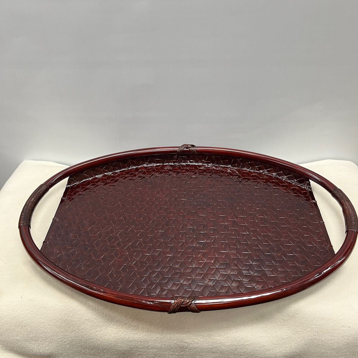 伝統工芸品 くさのや 漆器 楕円盆 ランタイ 竹細工 60×40×4cm (10216チ)