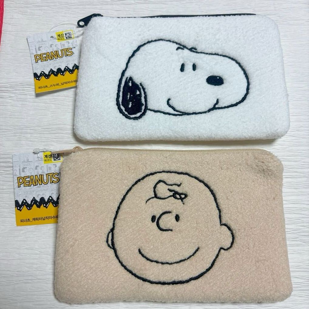 - 匿名配送 送料無料 韓国ダイソー限定 SNOOPY スヌーピー ふわふわ ポーチ 2種セット チャーリーブラウン スクエアポーチ 日本未発売 海外