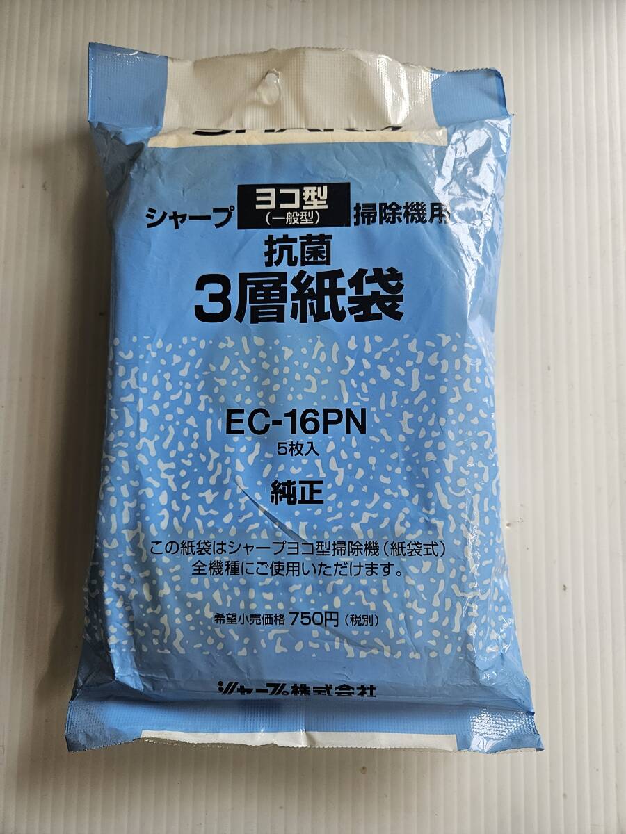 - SHARP シャープ 純正 EC-16PN ヨコ型(一般型) 掃除機用 抗菌3層紙袋 5枚入