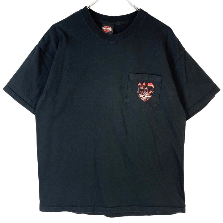 > USA製ハーレーダビッドソンHarley DavidsonヘインズHANES半袖Tシャツ胸ポケTバイクBIKEモーターサイクル両面プリントLEESBURGアニマル50621
