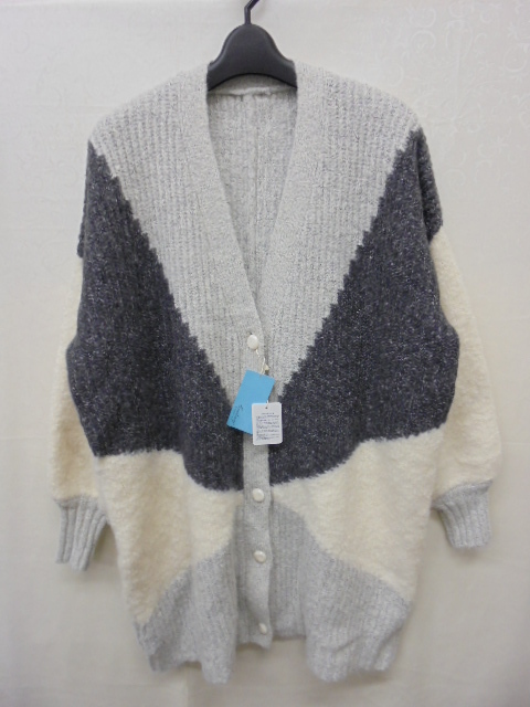 > 【KCM】sta-603-M★未使用品★【Couleurs di TOPKAPI】レディース Vネック ニット ビッグカーディガン アイボリー/グレー系 サイズ M