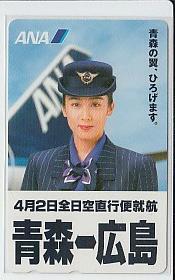 - 0-d624 航空機 ANA スチュワーデス 青森広島 テレカ