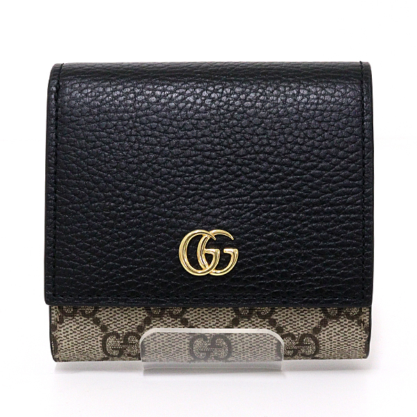 - グッチ GUCCI ダブルG バイカラー ミディアム ウォレット GGスプリーム キャンバス ブラックレザー 598587 ベージュ&エボニー【中古】S