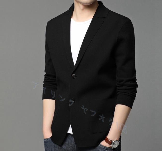 > ☆新品メンズテーラードジャケット ブレザージャケット カーディガン ニットセーター ビジネス対応 秋冬 トップス 黒 M~4XL選択