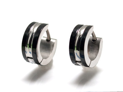 - ★人気★お勧め★手入れ不要★肌に優しい★金属アレルギー&温泉&海水浴ご使用OK★ステンレスリングピアス★ダブルブラックライン★