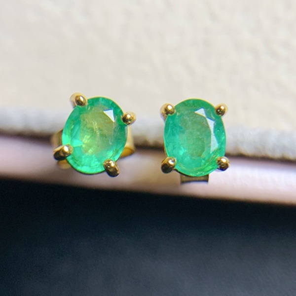 (証明書付き)女性用スターリングシルバーとエメラルドのピアス、4mm x 5mm