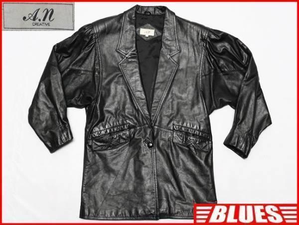 > 即決★A.N CREATIV★レディースF レザーコート 黒 ブラック 本革 キレイメ 本皮 ハーフコート ロック 革ジャン 牛革 カウ ジャケット