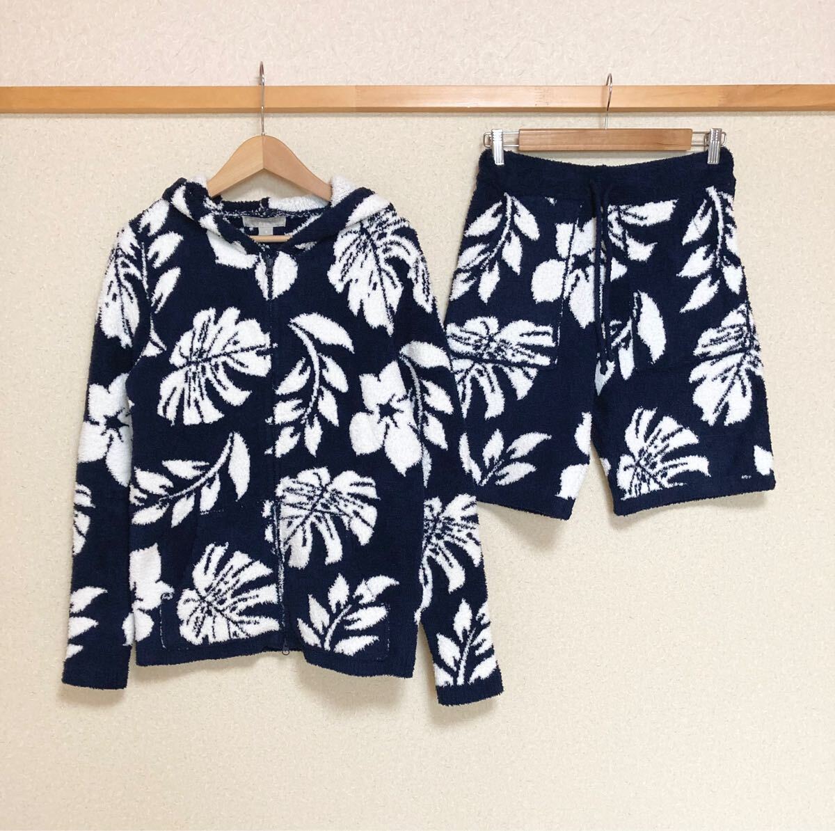 - [BAREFOOT DREAMS for Ron Herman] 別注 ボタニカル ボアフリース セットアップ S ネイビー ベアフットドリームス ロンハーマン