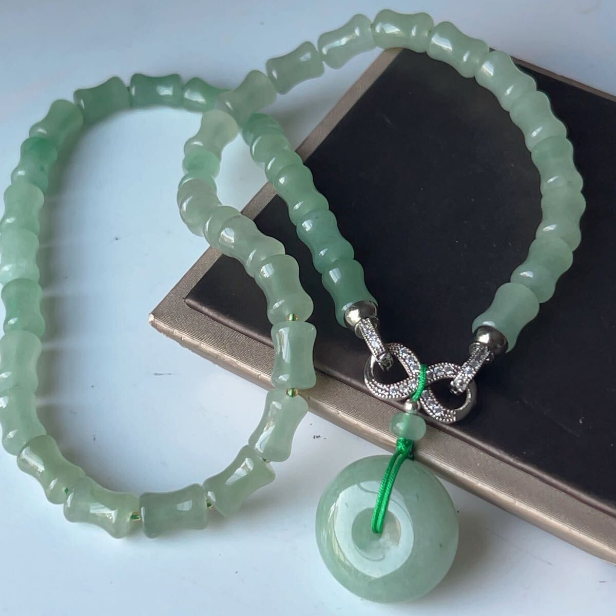 - ◇東陵玉◇ヒスイ◇ネックレス◇ペンダント◇竹節形◇平安扣◇お守り◇天然石◇パワーストーン◇巾着袋付き031P10221