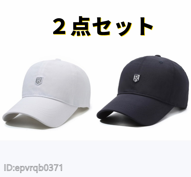 - 2点セット 野球帽 速乾通気 新品未使用 メンズ キャスケット 刺繍 英文字 紳士 帽子 フリーサイズ 調節可能 男女兼用 春夏 白/ネイビー