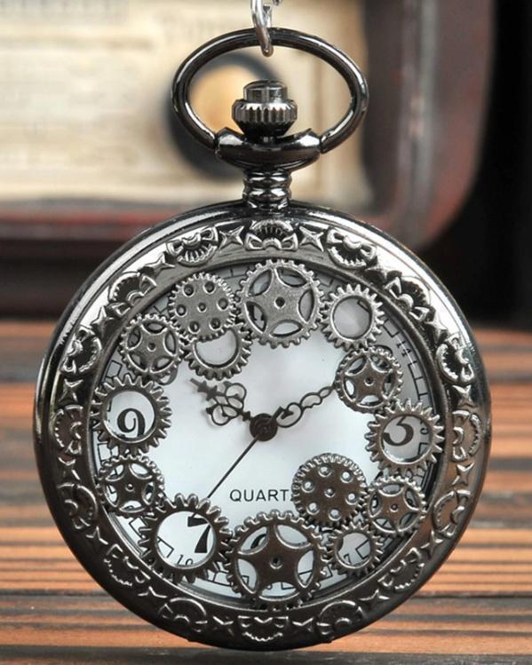 - 【懐中時計】歯車モチーフ ギア クオーツ ヴィンテージ ネックレス