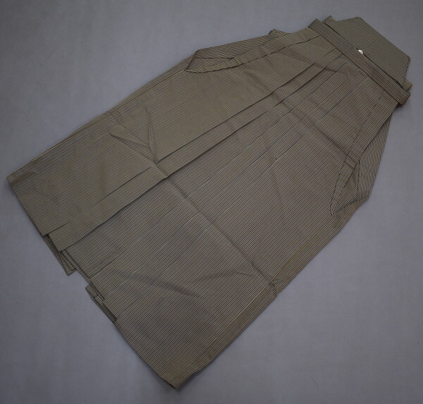 - A12-28【凛々】即決 中古品 正絹 男物 袴 行灯型 灰カーキ系 縞 83cm