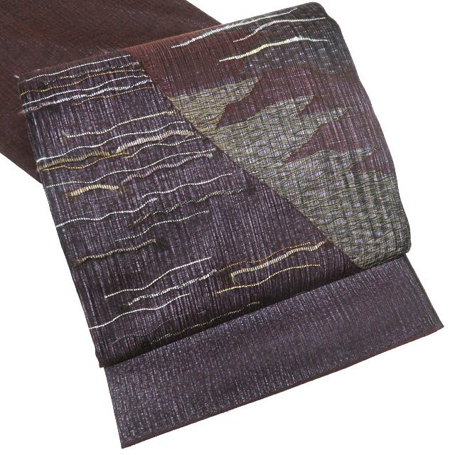 > 袋帯 中古 リサイクル 正絹 カジュアル 仕立て上がり お太鼓柄 櫛織 紫鳶色 多色 きもの北條 A1106-10