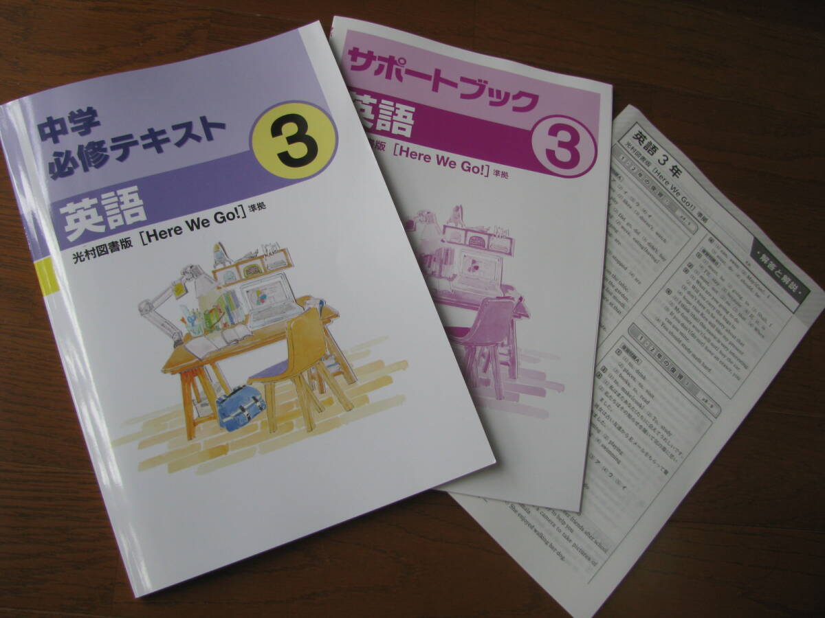 - 塾教材 中3英語 中学必修テキスト 光村図書 Here We Go! +別冊サポートブック+別冊解答解説 文理 未使用品 送料無料!