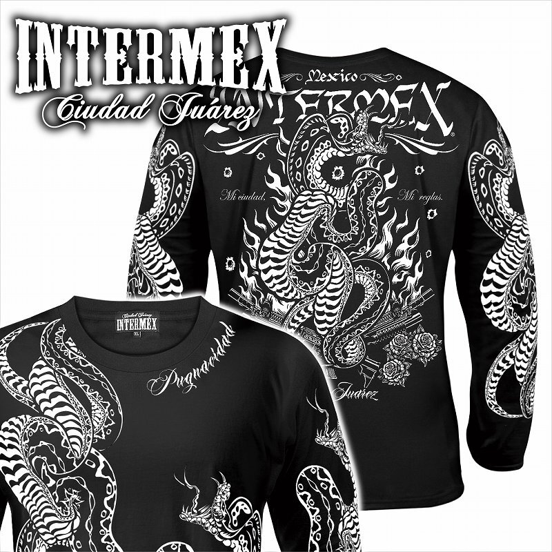 - 長袖 Tシャツ 服 INTERMEX コブラ パイソン柄 ロンT itm-093 黒 白 バイカー B系 HIPHOP系 ヤクザ オラオラ系 派手 メンズ ファッション