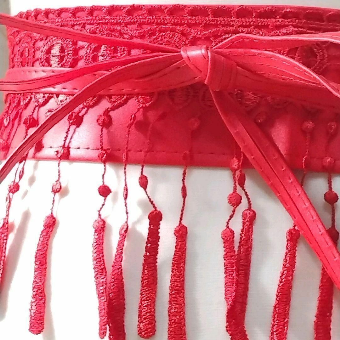 - 【レッド】レディース サッシュベルト 幅広ベルト 刺繍レース コルセットベルト