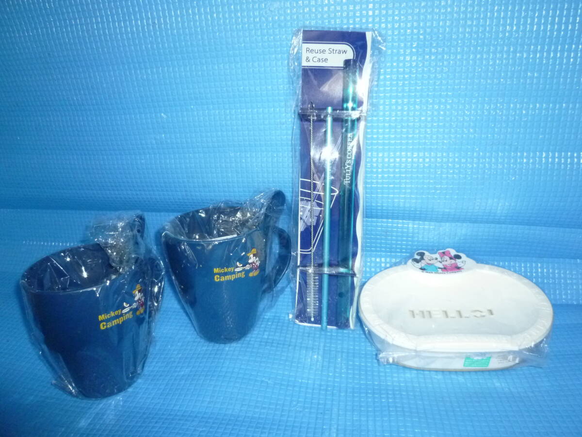- b★未使用・非売品★JCB×ミッキーマウス Campingスプーン付きコップ 2個とタリーズコーヒー リユースストロー&ケース(ブルー)他4点