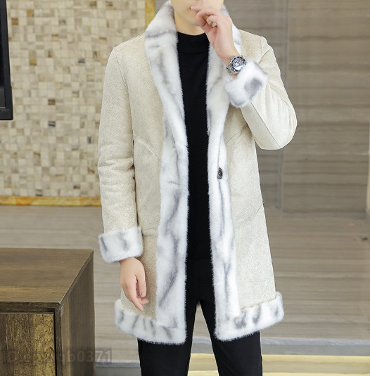 > ファーコート 新品上質 メンズ ロングコート 厚手 柄物 毛皮 フェイクファー 紳士 両面着 秋冬 アウター サイズ選択可 白/2XLサイズ