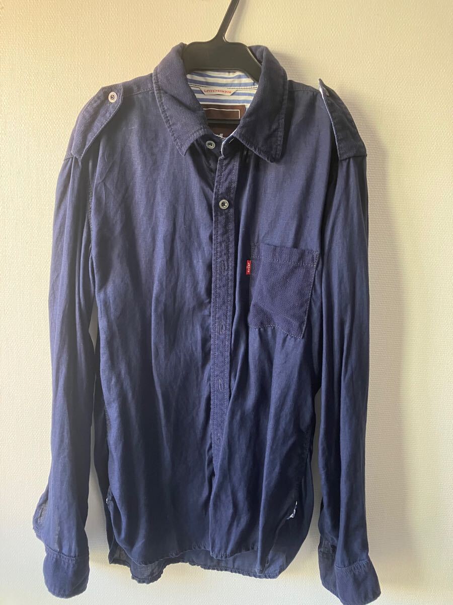- リーバイス 長袖 シャツ リネン 麻 プレミアム L RED premium ボーダー デニム denim LEVI’S レッド ダンガリー