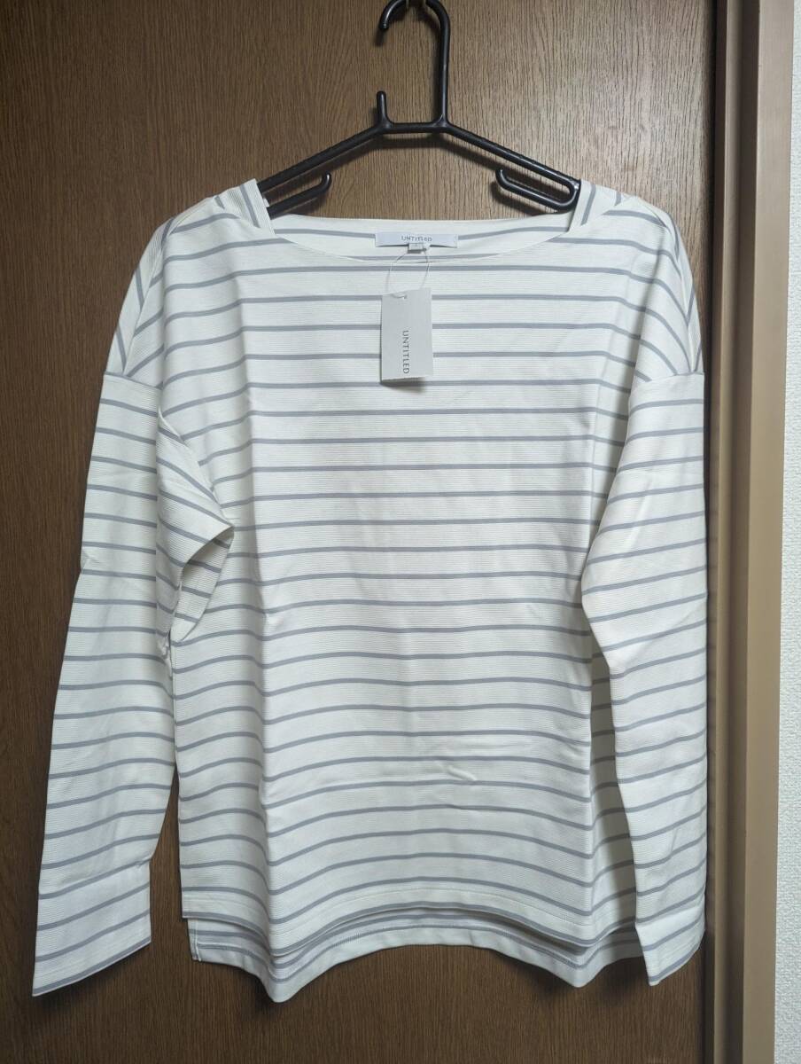 > アンタイトル 昨季新品 白×グレー ボーダー 長袖カットソー ボーダーロンT 大きいサイズ 4 11号 12号 カジュアルTシャツ スーツインナー