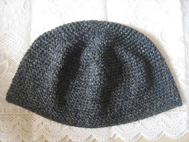 - 即決/ハンドメイド 手編み 通気性よい 高16cm/ウールシルクコットン グレー濃紺/帽子/ビーニー ニット イスラム帽/薄毛白髪脱毛症医療ケア