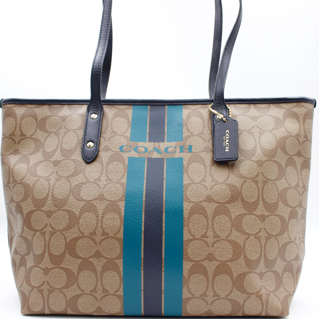 > コーチ シグネチャー ミッドナイト トートバッグ F38405 カーキ×ミッドナイト