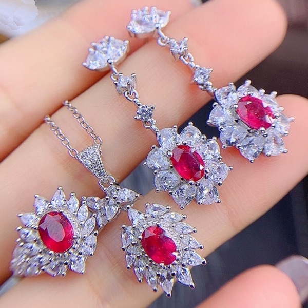 > 【証明書付き】女性用925スターリングシルバーのルビージュエリーセット、最初の入札者様は開始価格で購入可能