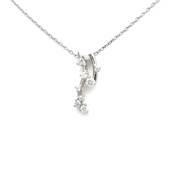 コメント | 大きさの異なるダイヤモンドがランダムに並び、星座のように連なったペンダント。プラチナのラインに立体的に配された9石(計0.20ct)のダイヤモンドが、胸元で美しく輝くスタージュエリーのネックレス。 ネックチェーンはアジャスター付。 総重量3.7g 緑屋商品番号:1110230 | 程度 | 中古Aランク | 素材・色 | Pt950 | サイズ | チェーン45cm トップ全長16.6mm 幅6.6mm | 付属品 | ギャランティーカードなし 箱なし |