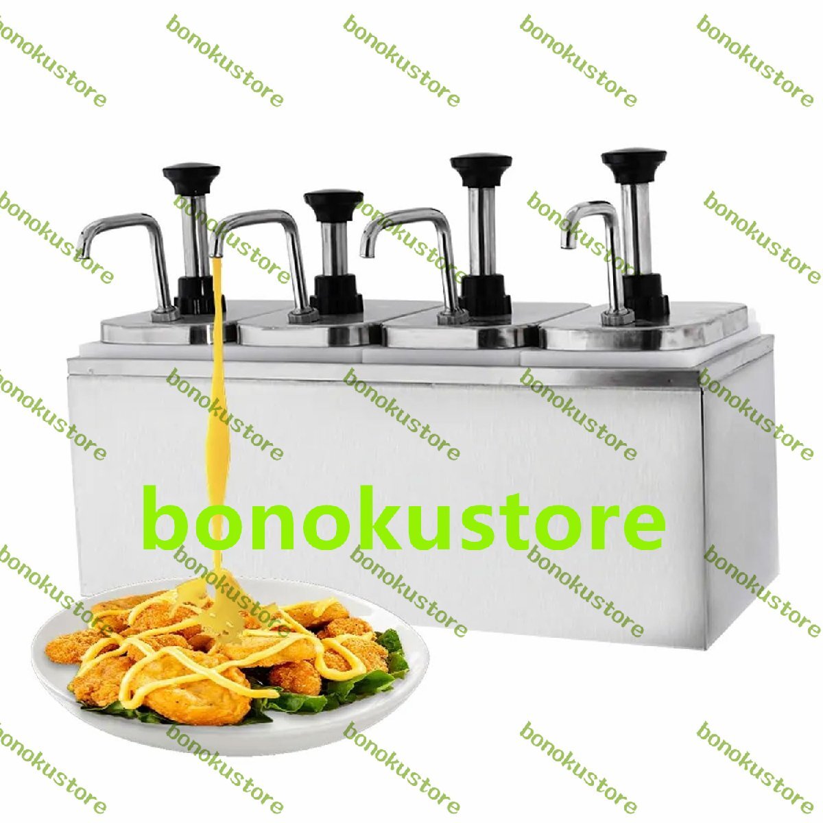 > 業務用ソースポンプ 2Lx4 デスクトップ取り外し可能なステンレス鋼調味料ディスペンサー 15cc 出口付き クイックリバウンド&標準定量