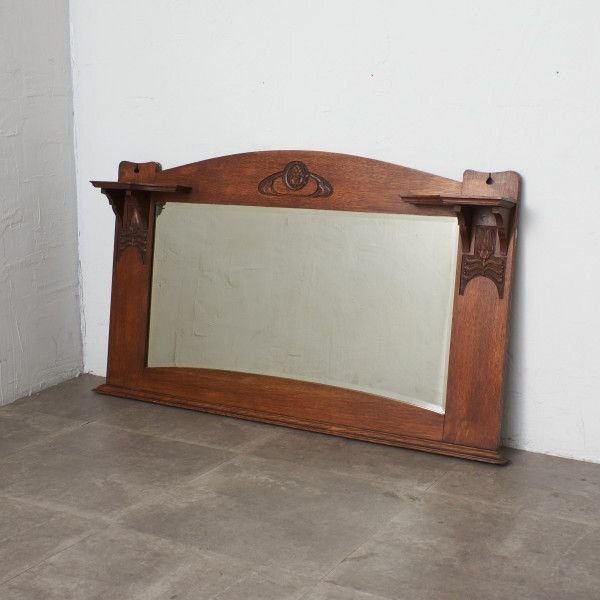 - IZ83324F★英国 アンティーク オーバーマントル ミラー 木彫刻 アーツ アンド クラフツ 鏡 ウォールミラー 暖炉飾り クラシック イギリス