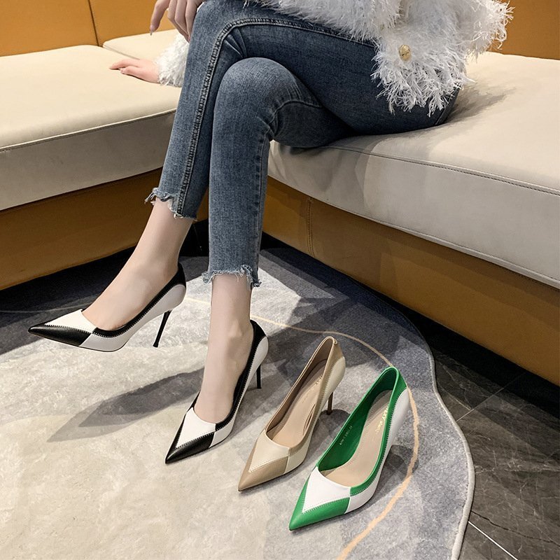 - 新品 レディース ハイヒール パンプス 美脚シューズ 婦人靴 バイカラー パーティー ピンヒール 身長アップ 結婚式 フォーマル DYL400