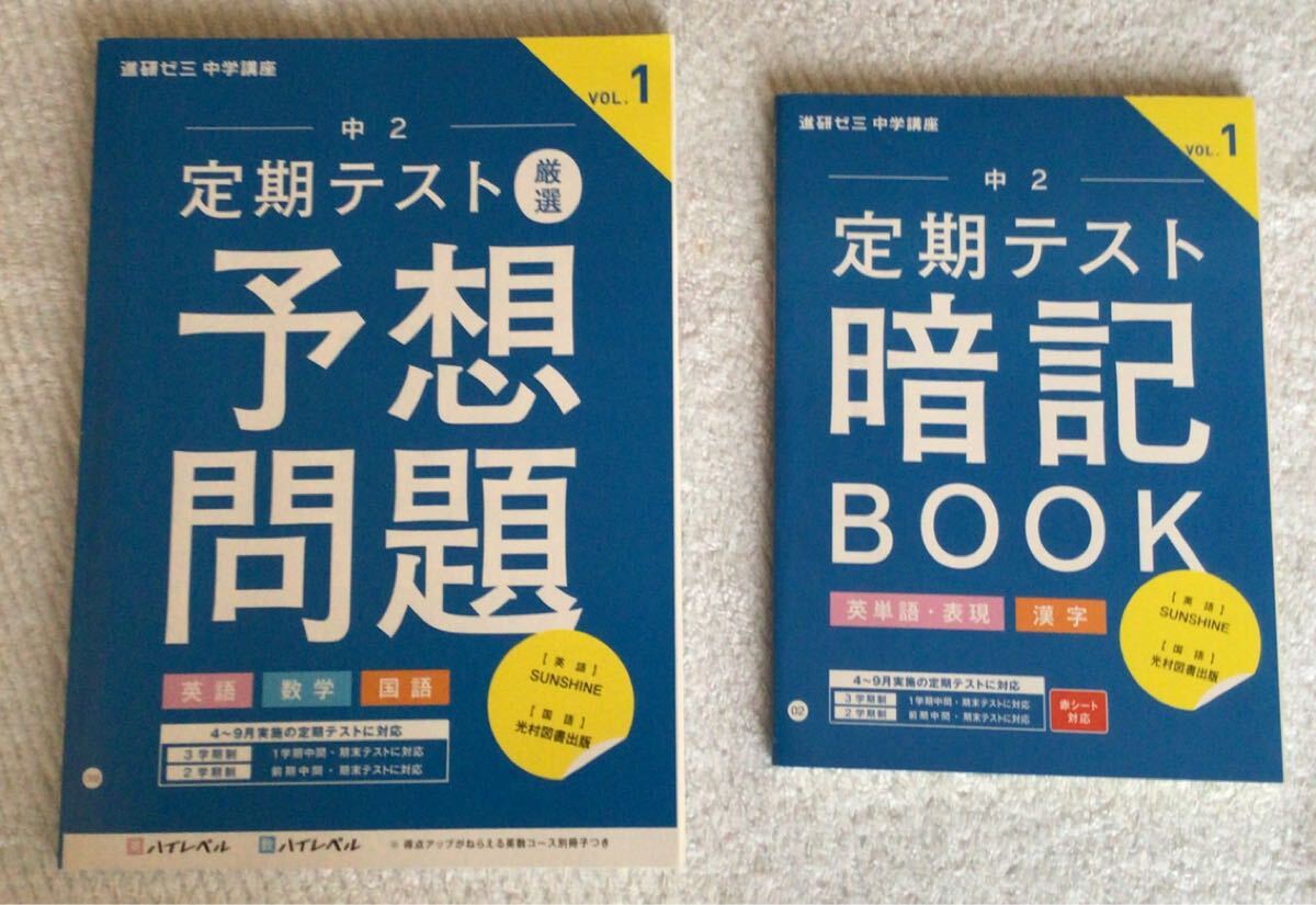 - 【進中B5-17】進研ゼミ 中学講座 中2『定期テスト 厳選予想問題 英数国 VOL.1』『定期テスト 暗記BOOK 英単語・表現 漢字 VOL.1』2020年5月