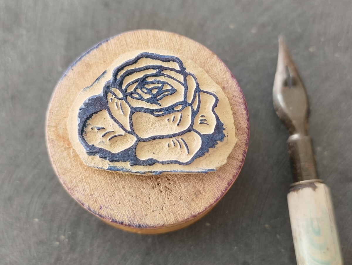 > バラ ローズ 花柄 八重 多弁 蕾 フランス アンティーク スタンプ ヴィンテージ ハンコ イラスト ガーデニング ロザリアン 仏