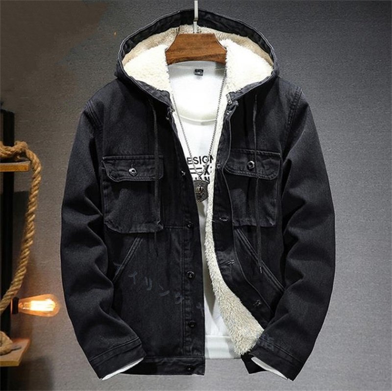 - ☆新品 デニムジャケット メンズ 裏ボア裏フリース ジージャン バイクジャケット 作業服 アウター パーカー 冬用 クロ 4XL