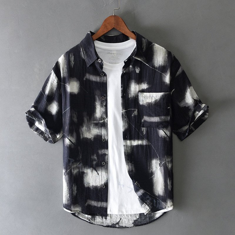 > ☆新品 半袖シャツ リネンシャツ 麻混ん アロハシャツ 夏涼しい カジュアルシャツ サマーシャツ トップス 黒【M~4XL選択】