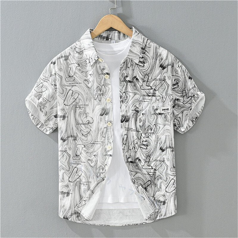 - ☆新品 半袖シャツ 夏服 カジュアルシャツ サマーシャツ トップス コットンシャツ 総柄 黒 3XL選択