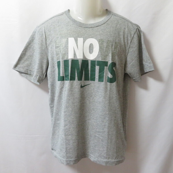 > 古着 メンズM NIKE/ナイキ ポリエステルTシャツ 半袖 スポーツ ジム ジョギング トレーニング グレー/ホワイト/グリーン 612684-063