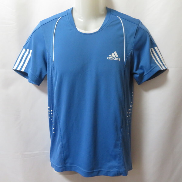 > 古着 メンズS adidas/アディダス ポリエステルTシャツ 半袖 スポーツ ジム ジョギング トレーニング FORMOTION ブルー/ホワイト 293738