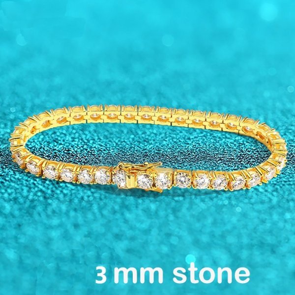 男性と女性のためのモアッサナイトブレスレット、18k金メッキ、3mm、19cm、GRA鑑定書、925スターリングシルバー