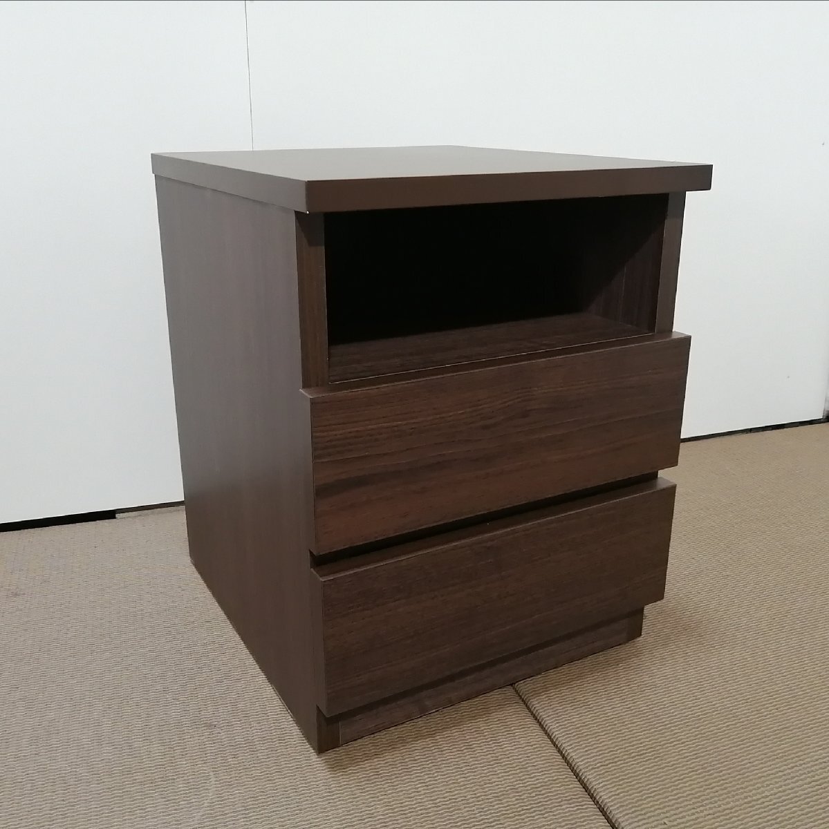 > 極美品 ドリームベッド■ナイトテーブル ウォールナットカラー NT-017 MEW サイド ナイトスタンド 引き出し2段 ダークブラウン ② 名古屋