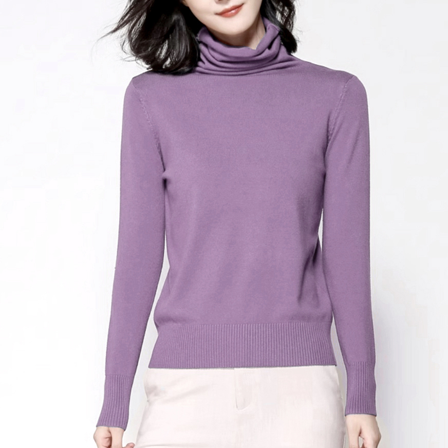 - 新品 タートルネックセーター ニット 薄手 レディース ハイネック 紫 free222